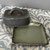 rechteckige Butterdose für ein halbes Pfund Butter,bestehend aus einem Unterteil mit kleinen Rand und einem Deckel mit Henkel in Schiefer uni, oder Schiefer /Mint